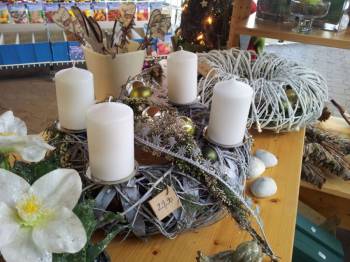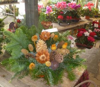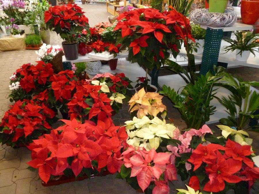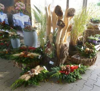 - Weihnachtssterne, Orchideen, Alpenveilchen, Schmuckreisig, kleine Kränze